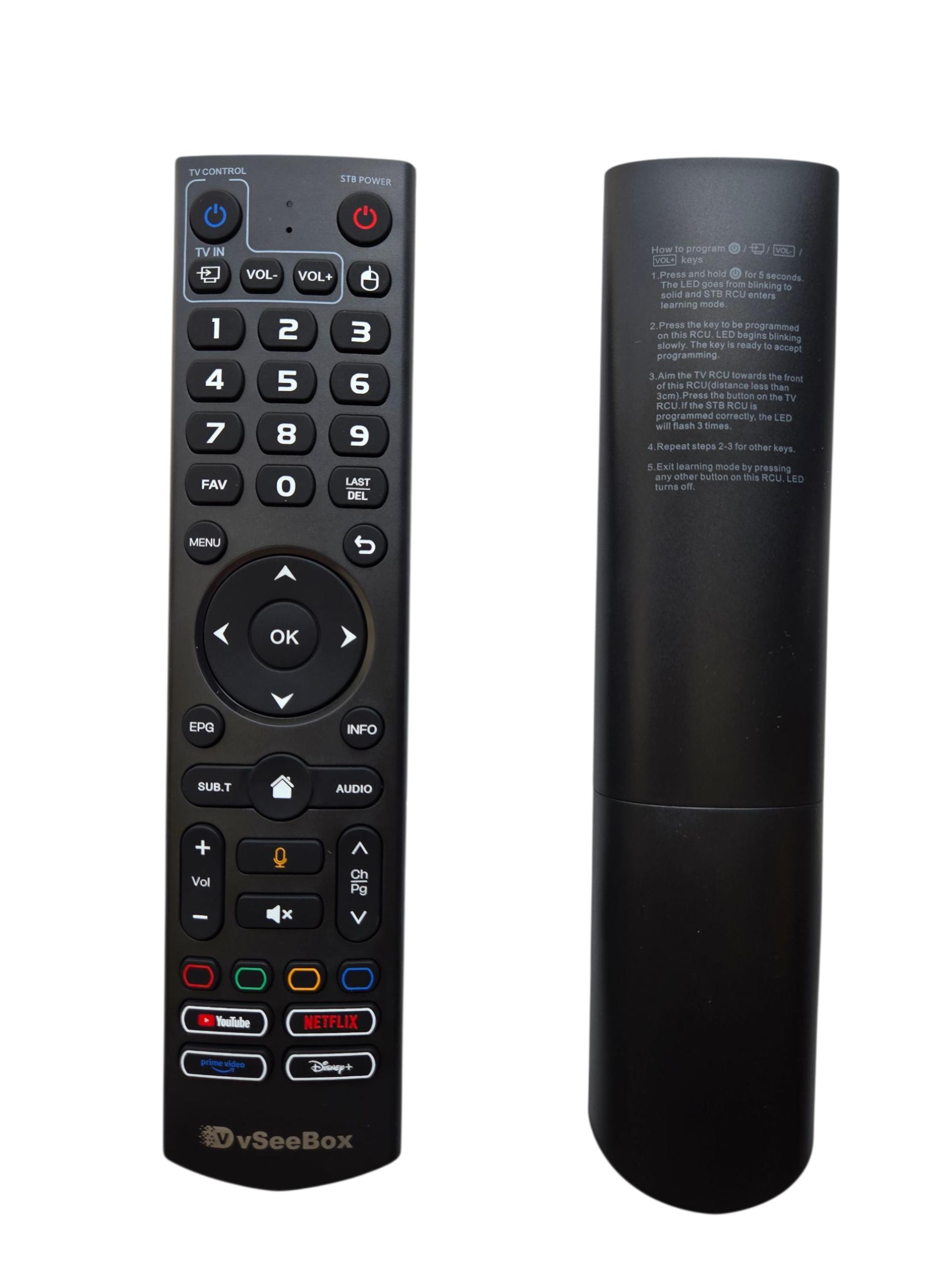 • Effortless Control – Navigate your vSeeBox with Bluetooth for a fast, lag-free experience, or use infrared mode for direct control.